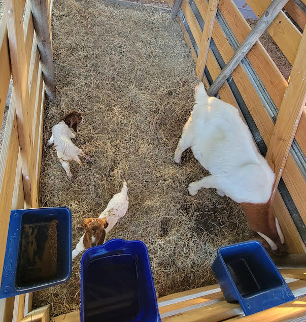 Our goats are gentle and curious, providing excellent socialization opportunities for our Jack Russell puppies. They help teach the puppies to be calm and friendly around different types of animals.